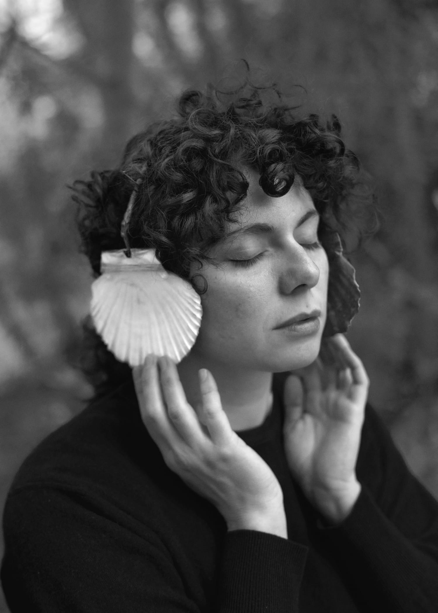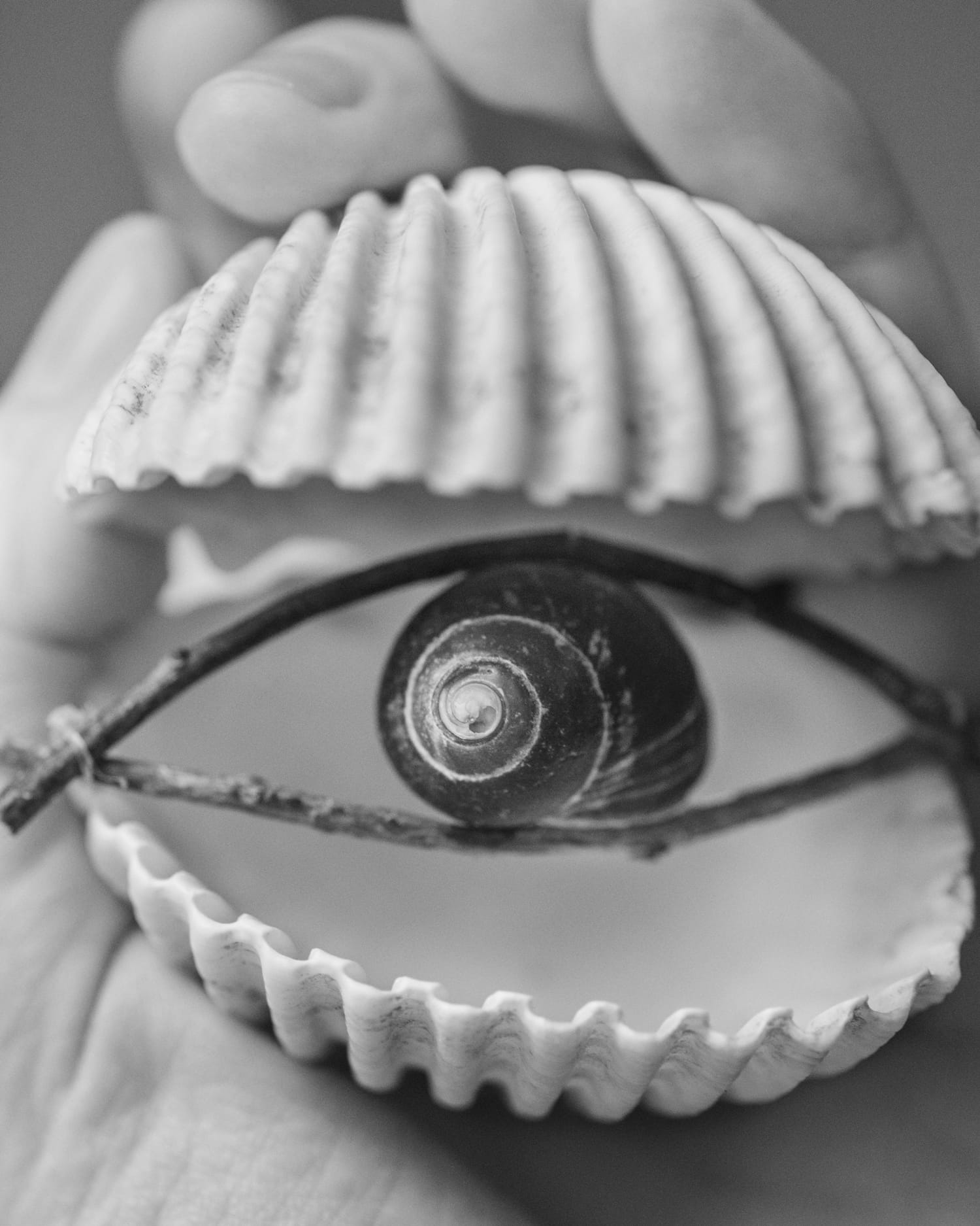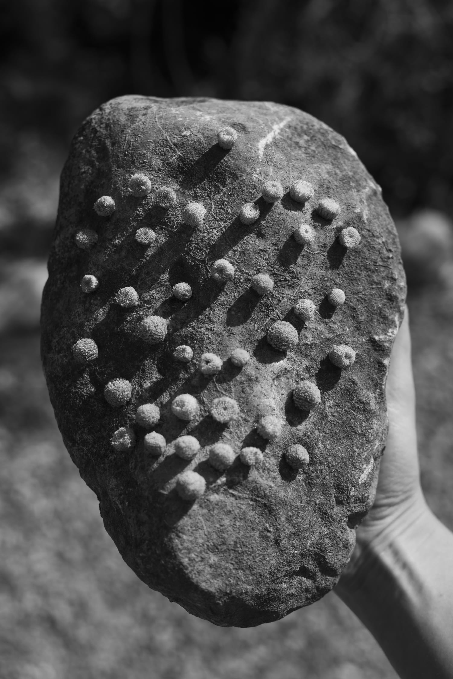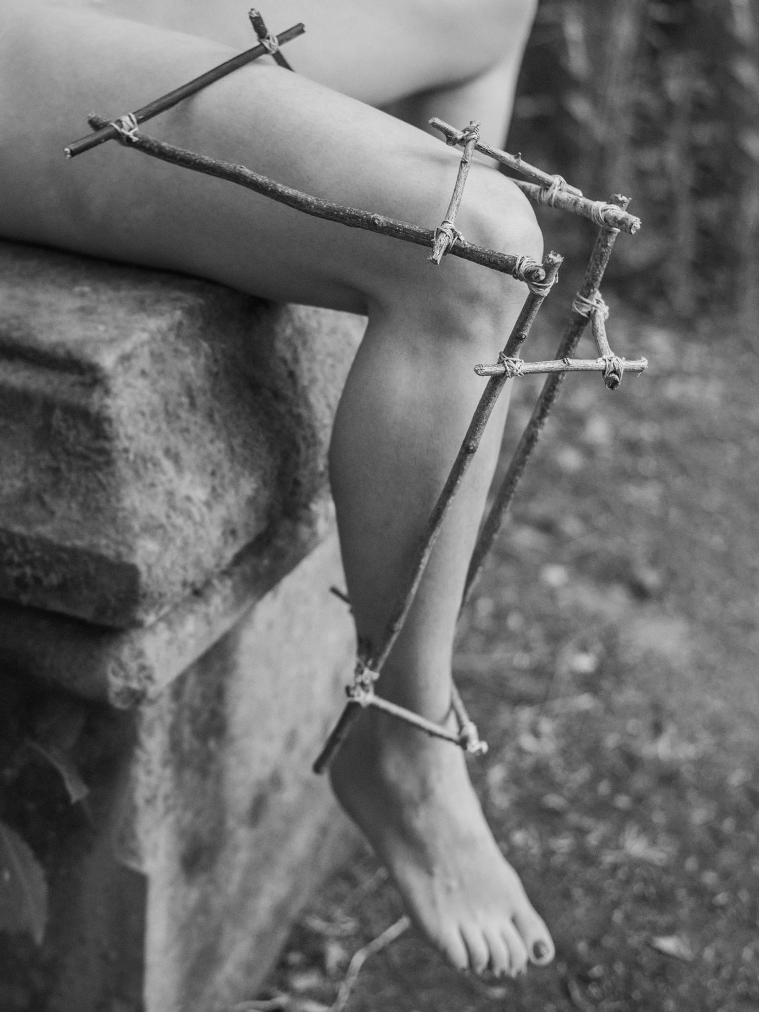The objects in her Non-Technological Devices project are made from found natural materials such as branches and rocks. Many of the objects resemble the devices that have become an extension of our bodies and lives, but with an organic twist.
