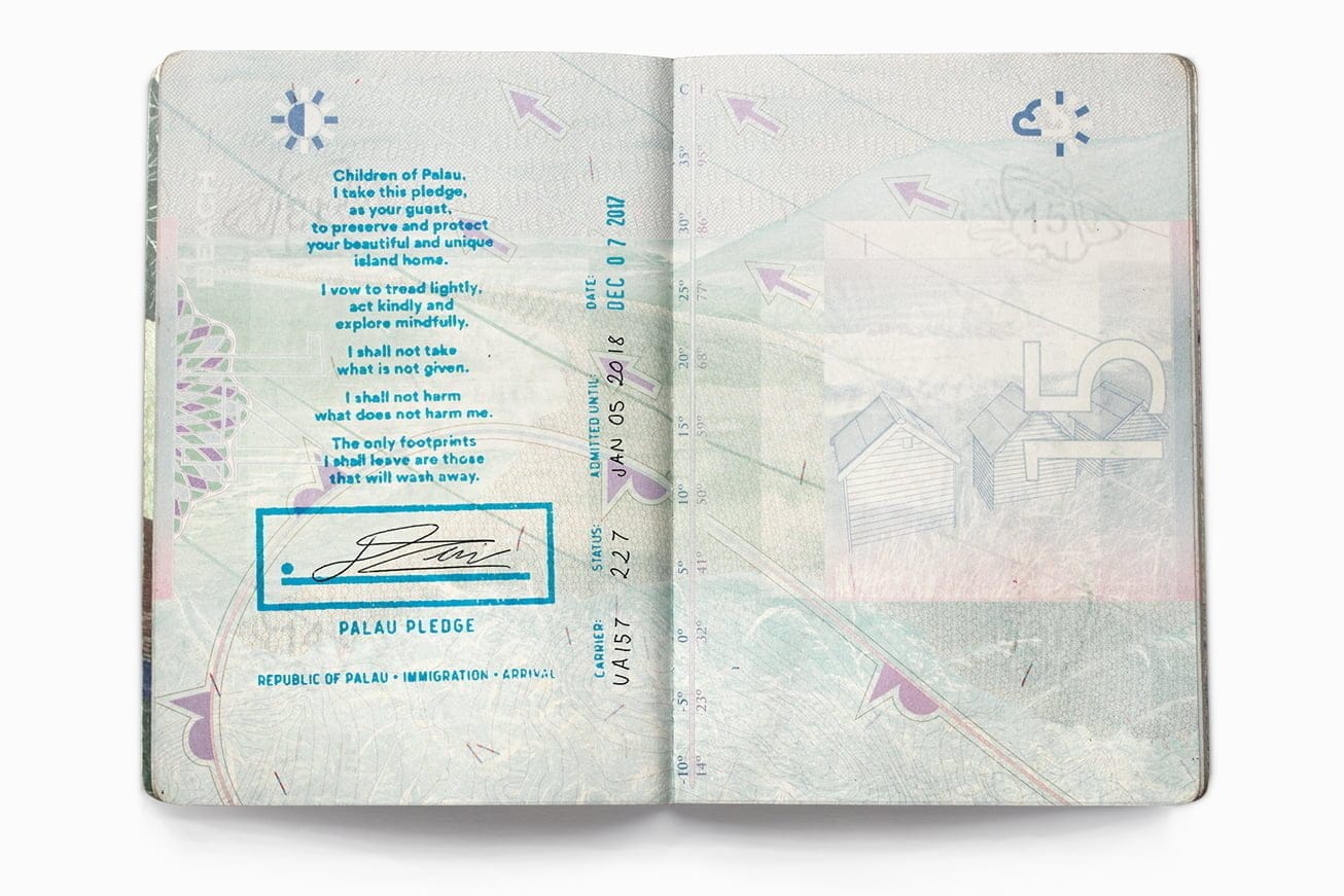 The full Palau environmental pledge is stamped in your passport for reference. Photo: Palau Bureau of Tourism
