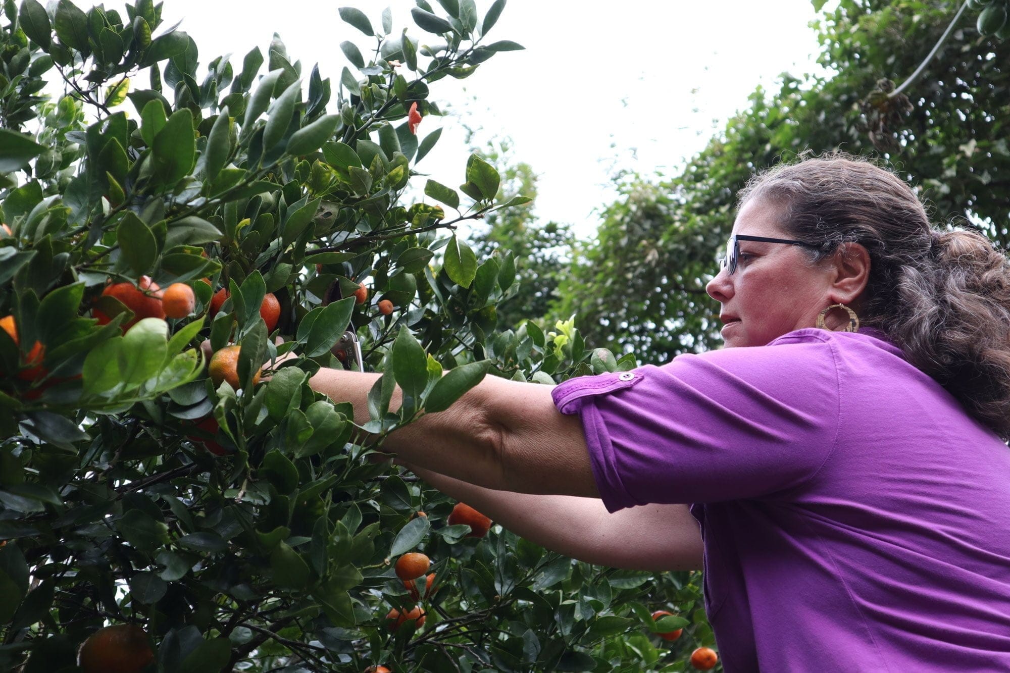 Kris Bordessa picking tangerines. She wants more people to grow and preserve their own food. Photo courtesy of Kris Bordessa