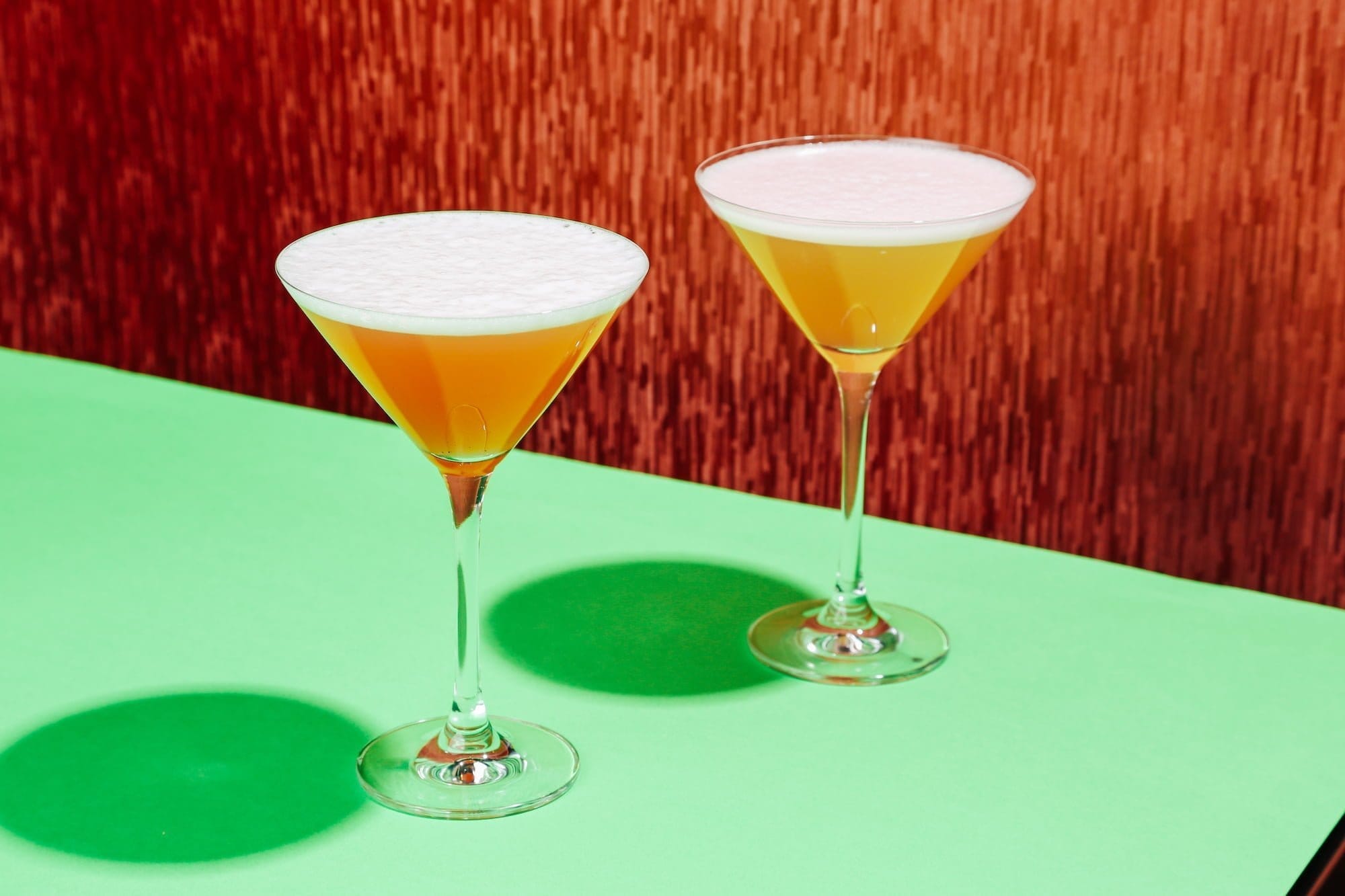 Just before serving add lemon juice and ice cubes. Use a blender to generate a foam and serve in a martini glass with the foam on top. Enjoy!