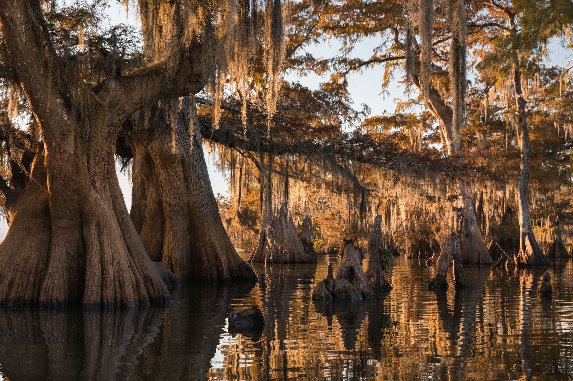 These cypress trees in the swamps of Louisiana are helping fight climate change. Photo: Getty / Bill Swindaman