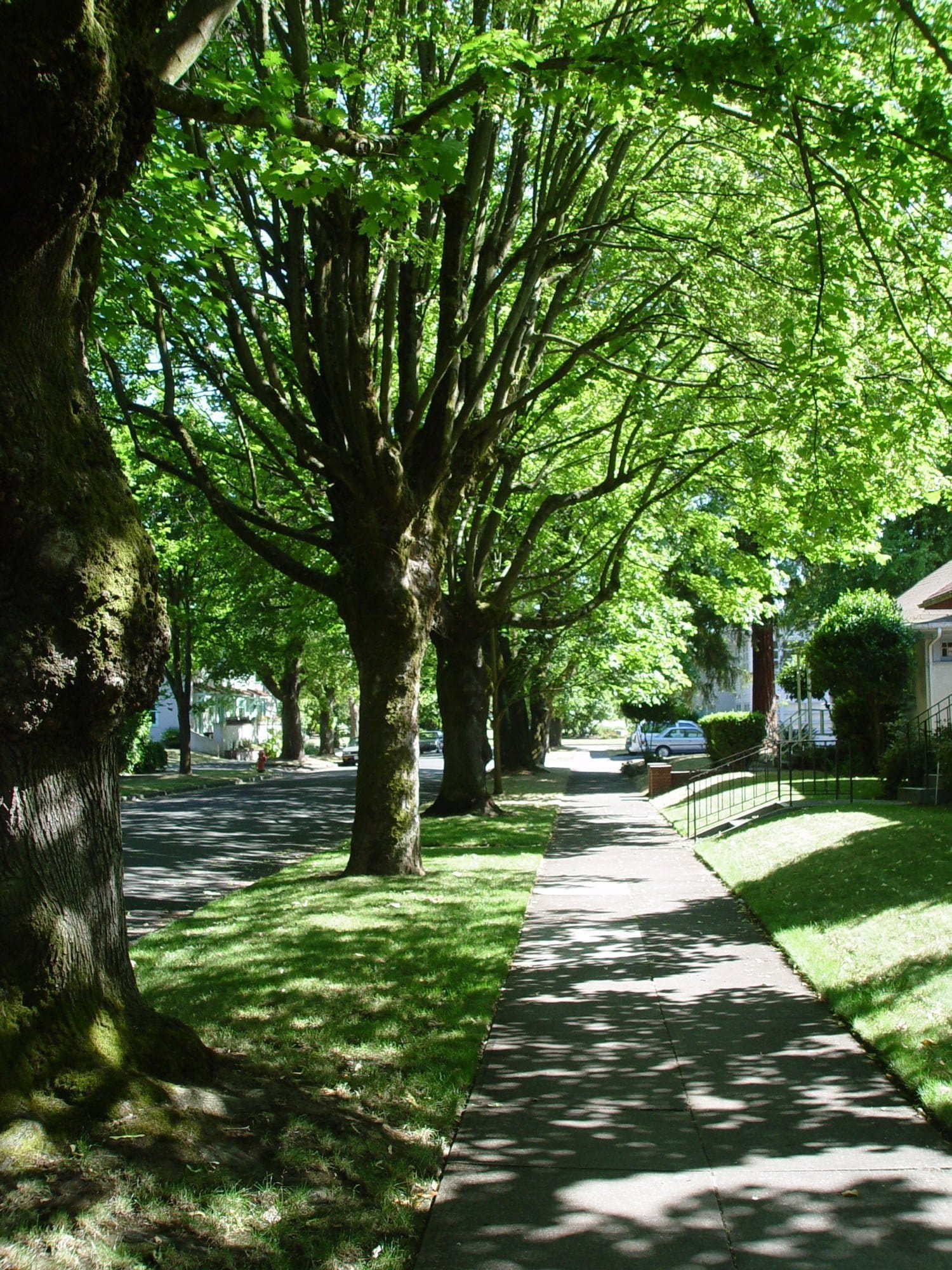 Trees help keep this neighbourhood in Portland, Oregon cool. Photo: Getty / Tomwald