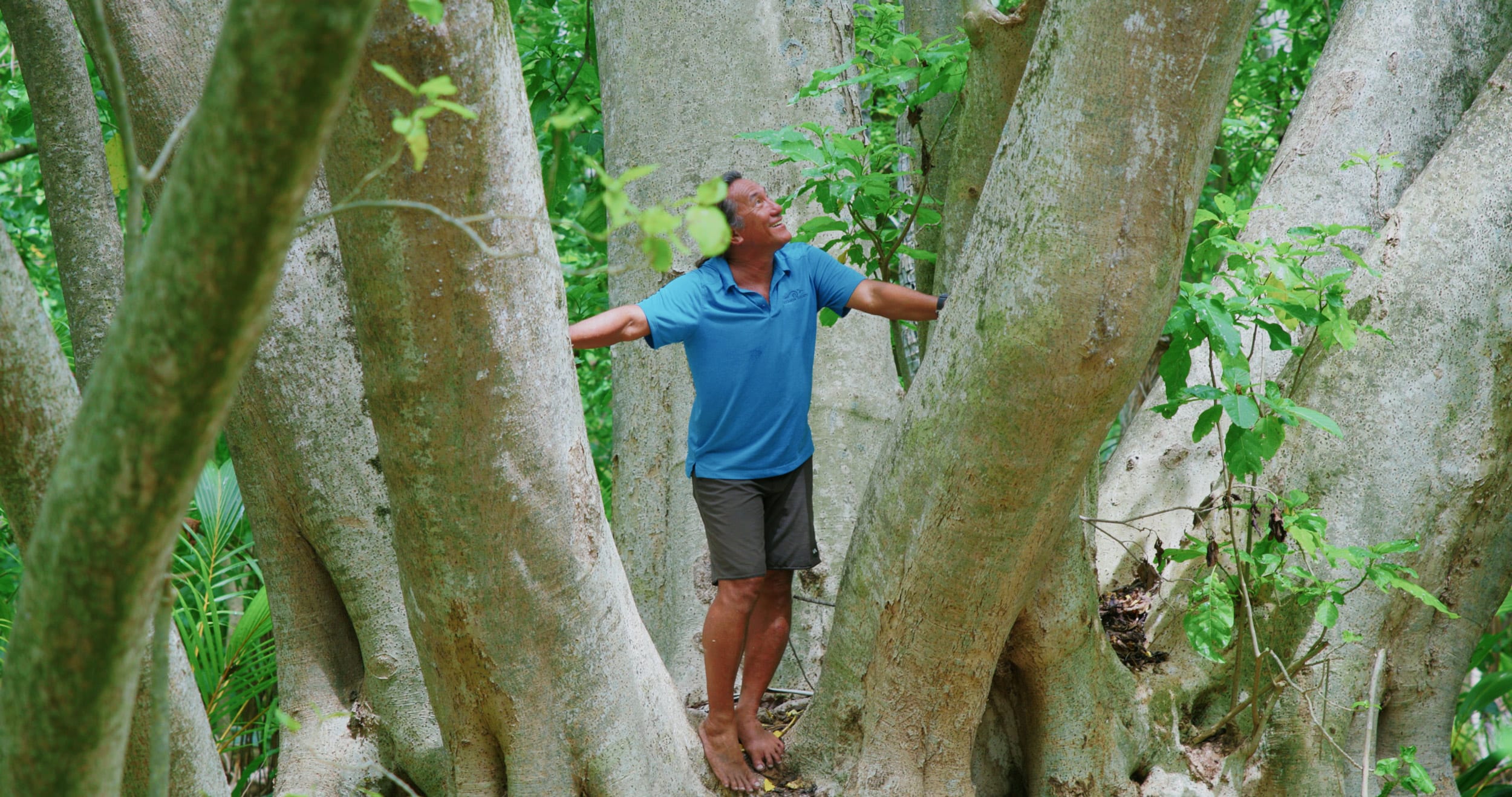 This is Thierry’s happy place: wrangling coconut crabs strong enough to snap your finger off (he still has all 10) and sheltering beneath the grandpa cabbage tree.