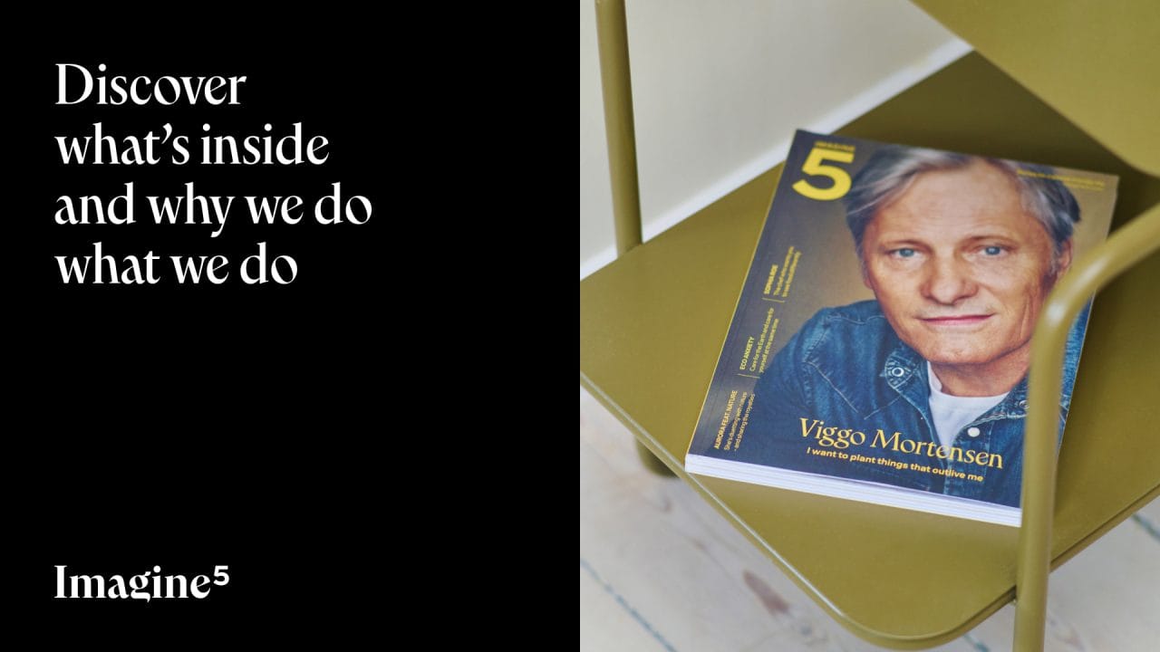We are Imagine5 – an environmental storytelling platform. Our magazines are packed with uplifting stories to inspire a greener lifestyle. In honour of our cover star Viggo Mortensen’s 67th birthday, use code VIGGO at checkout to get 20% off – also applies to bundles!
