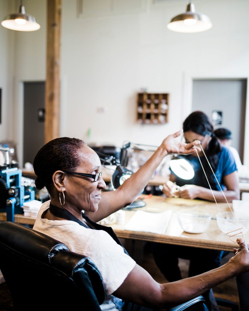 Crystal (who asked us to just use her first name) makes jewellery for Able in Nashville, and is one of those who has benefitted from its approach. Prior to working at Able, Crystal was unable to afford an apartment and consequently had a two-hour daily commute. “I can’t even really tell you how big a deal this is,” says Crystal. “To be able to come into a job with no skills or background in it, and be making as good of money as I am and getting trained to do something, and it being fun. I’m continually empowered and getting to learn new things, new skills, and getting opportunities for advancement – in pay and in title. I have savings now. I have a lot of dreams… I still have possibilities that a single person in Nashville would not have with my level of skill and education, if I had not gotten this position.”